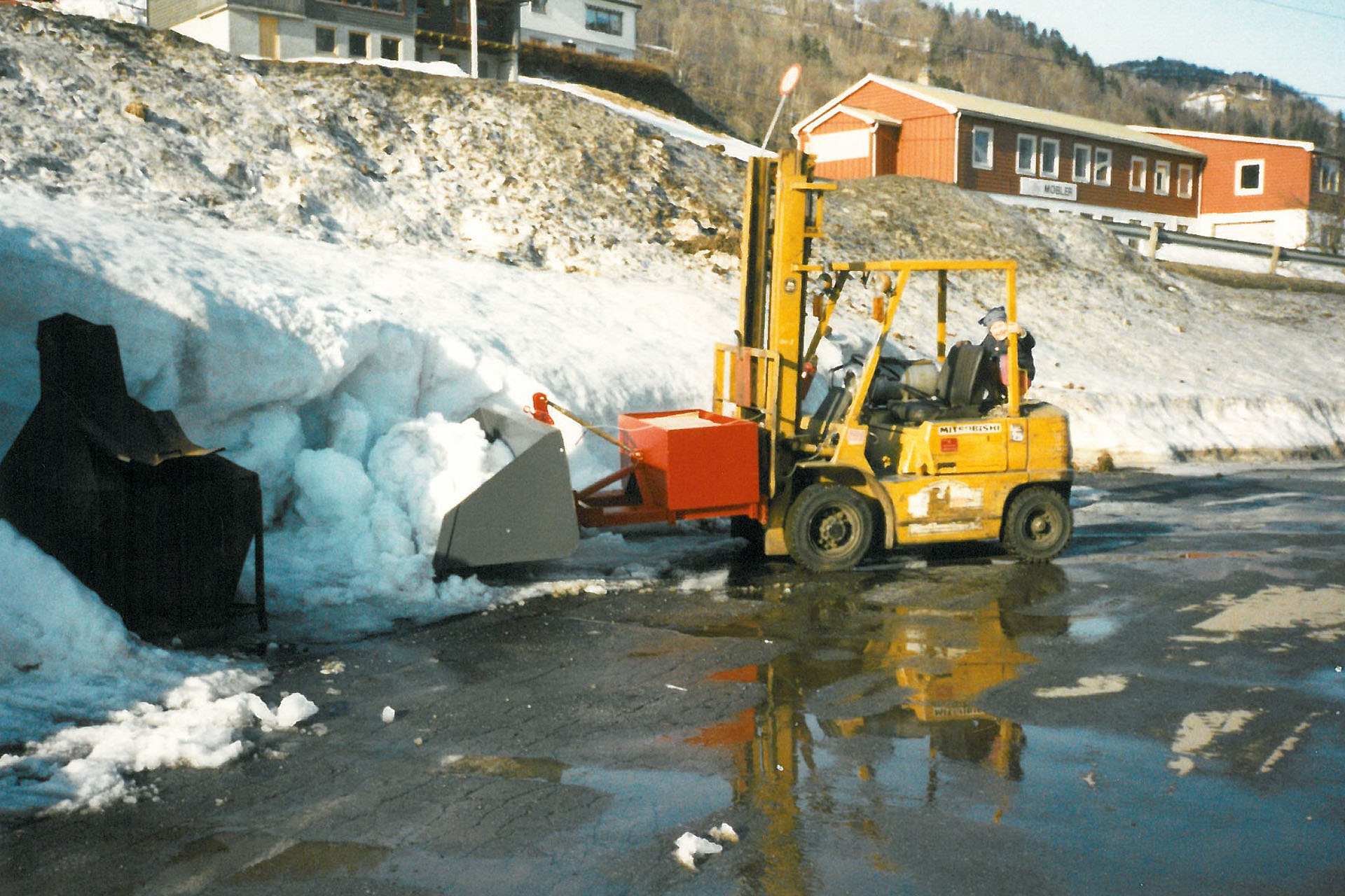 The company survived the hard start, and eventually tractor-mounted equipment came into focus. In the 1950s and 1960s, the two-wheeled tractor was used on the steep lying uses here west, and the company found a large market for its products.